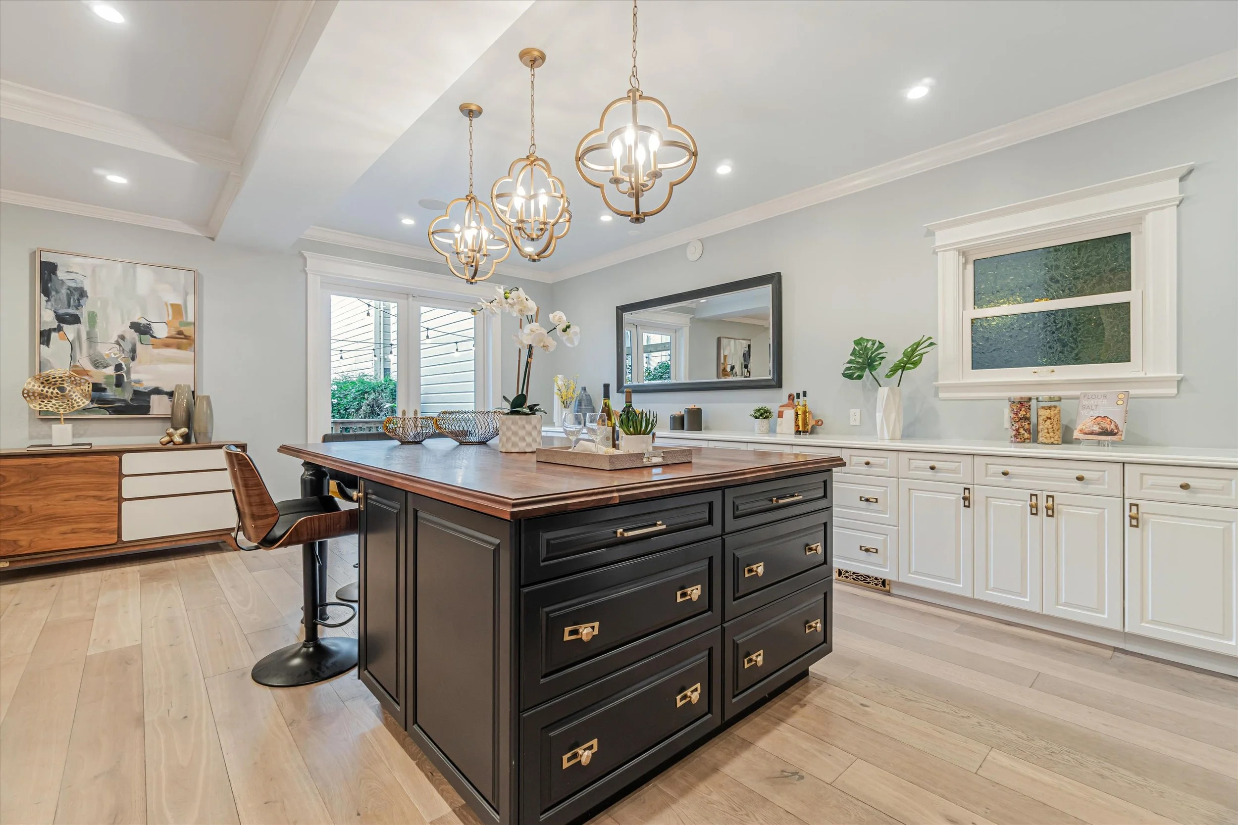 Spectacular Nob Hill flat remodeled and completed with permit in 2019 featuring two bedrooms and gorgeous en-suite baths with Ann Sachs tile. Open living-dining area with an inviting sit down, handcrafted, 8-foot walnut top kitchen island. Beautiful Le Cornue gas range and hood. Butler's pantry with Liebherr refrigerator and Fisher Paykel appliance drawers, and custom cabinets. Speaker system in the living room, bathrooms, and backyard. Laundry room with sink and custom cabinetry. Two storage rooms at basement level. Spacious outdoor deck, and a large private landscaped garden with fruit trees (cherry, Meyer lemon, lime, orange, peach, and nectarine) and city views ideal for entertaining and al fresco dining.